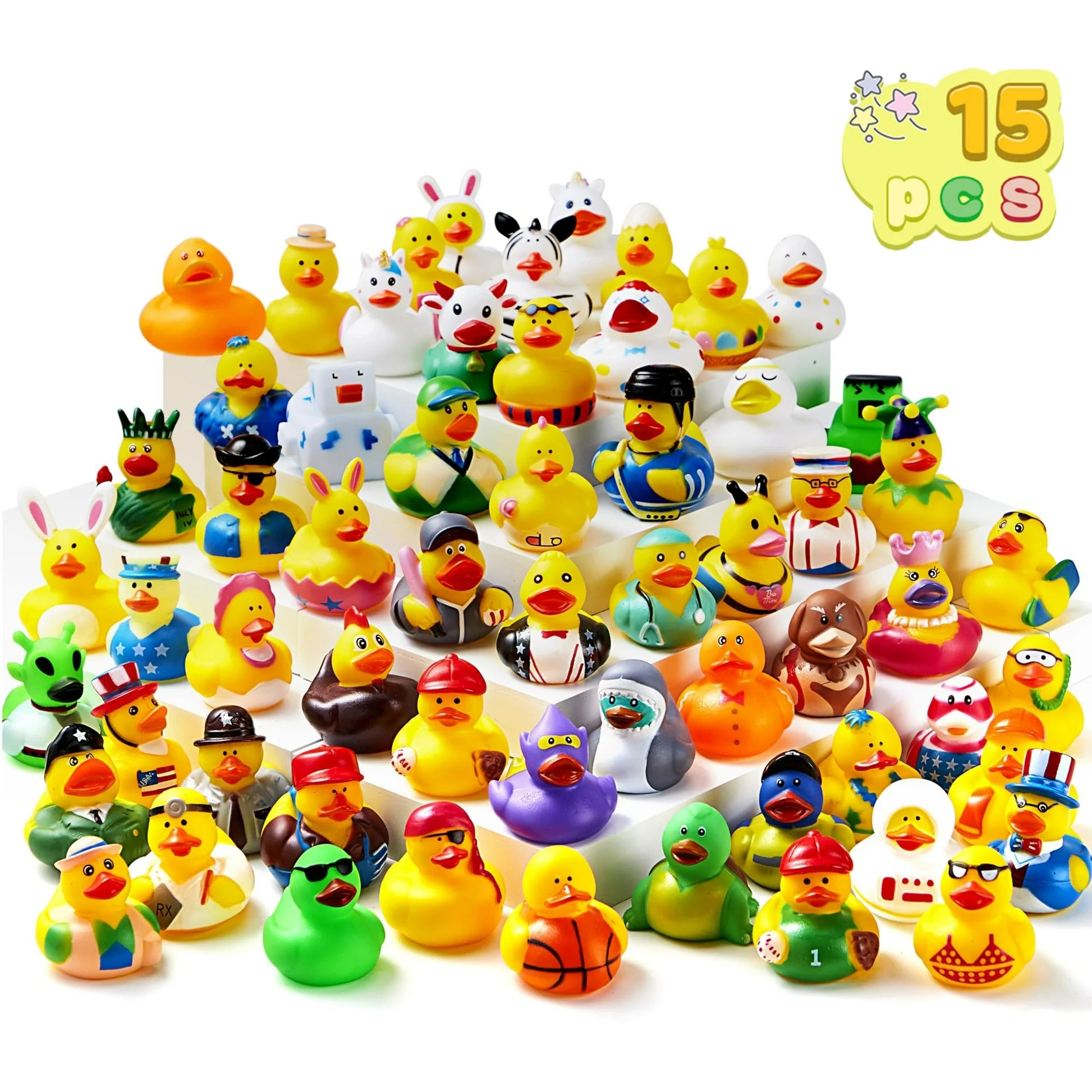 SYNCFUN 15 Pcs Rubber Ducks, Random Assortment Mini Rubber Duckie Toys with Mesh Carry Bag for Kids Baby Bath Shower Toys, Birthday Gifts, Summer Beach Pool Activity, Party Favors