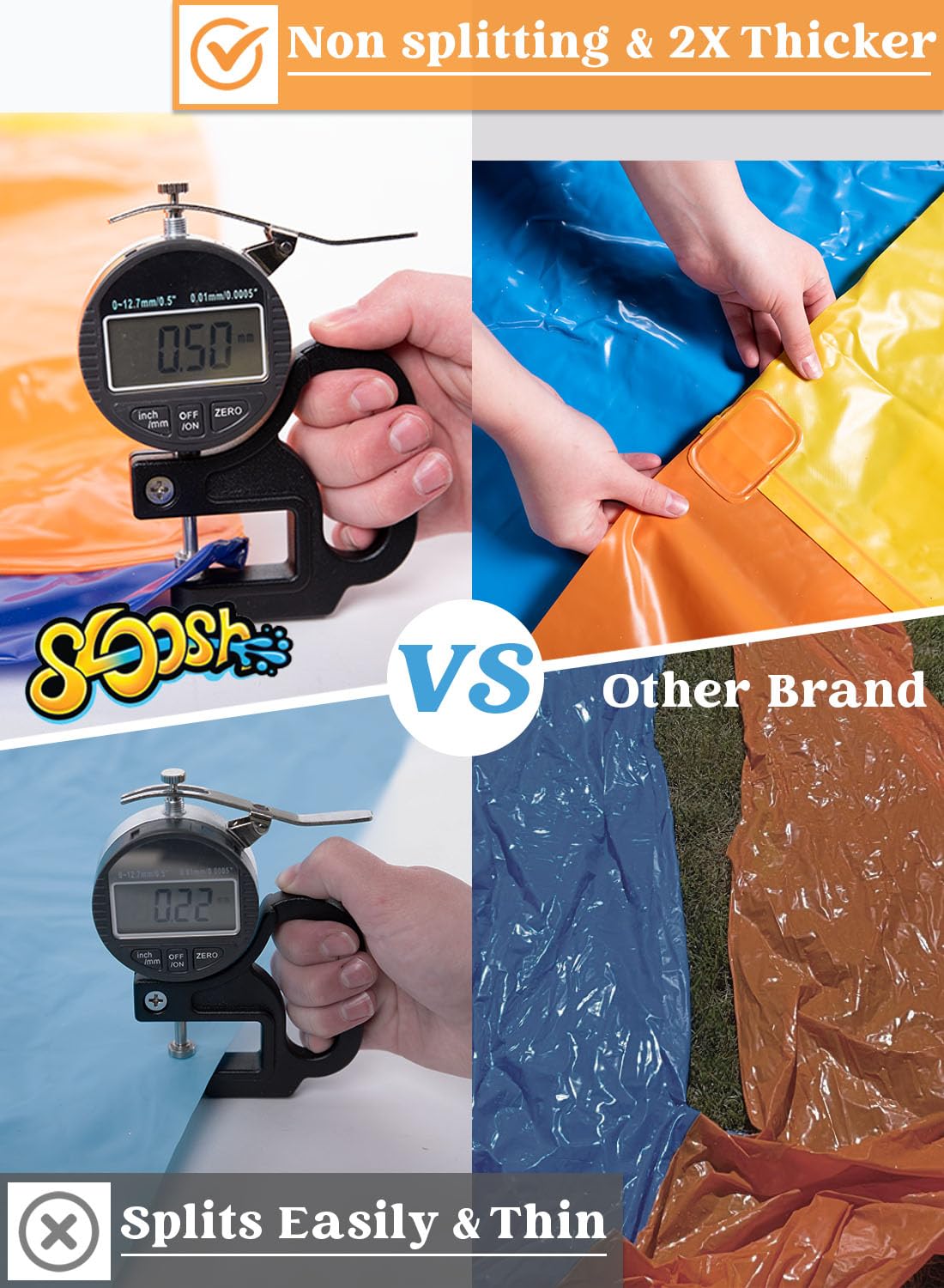 - Engineered for durability, our water slide is non-splitting and features a thickness twice that of standard slides, ensuring a secure and robust sliding experience.