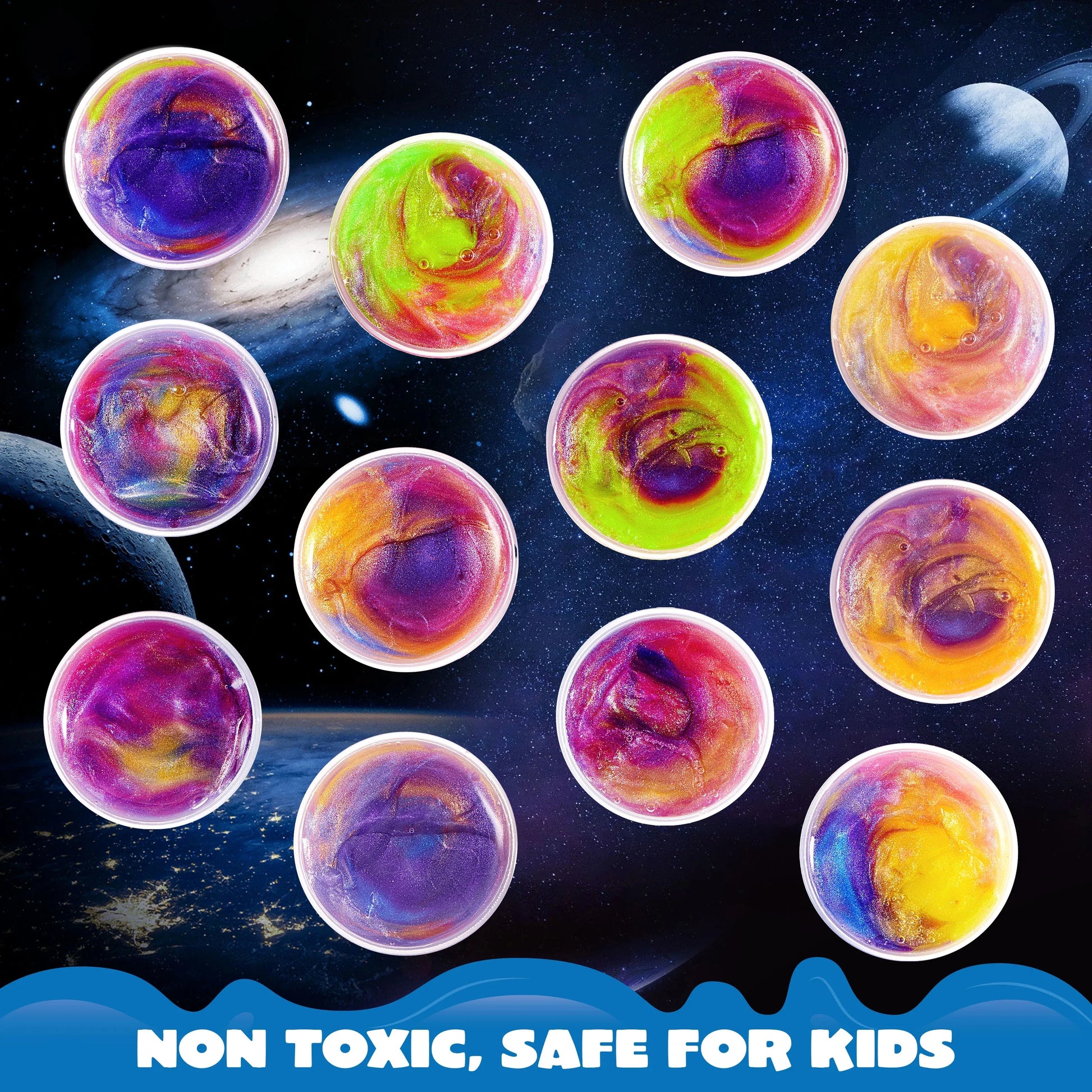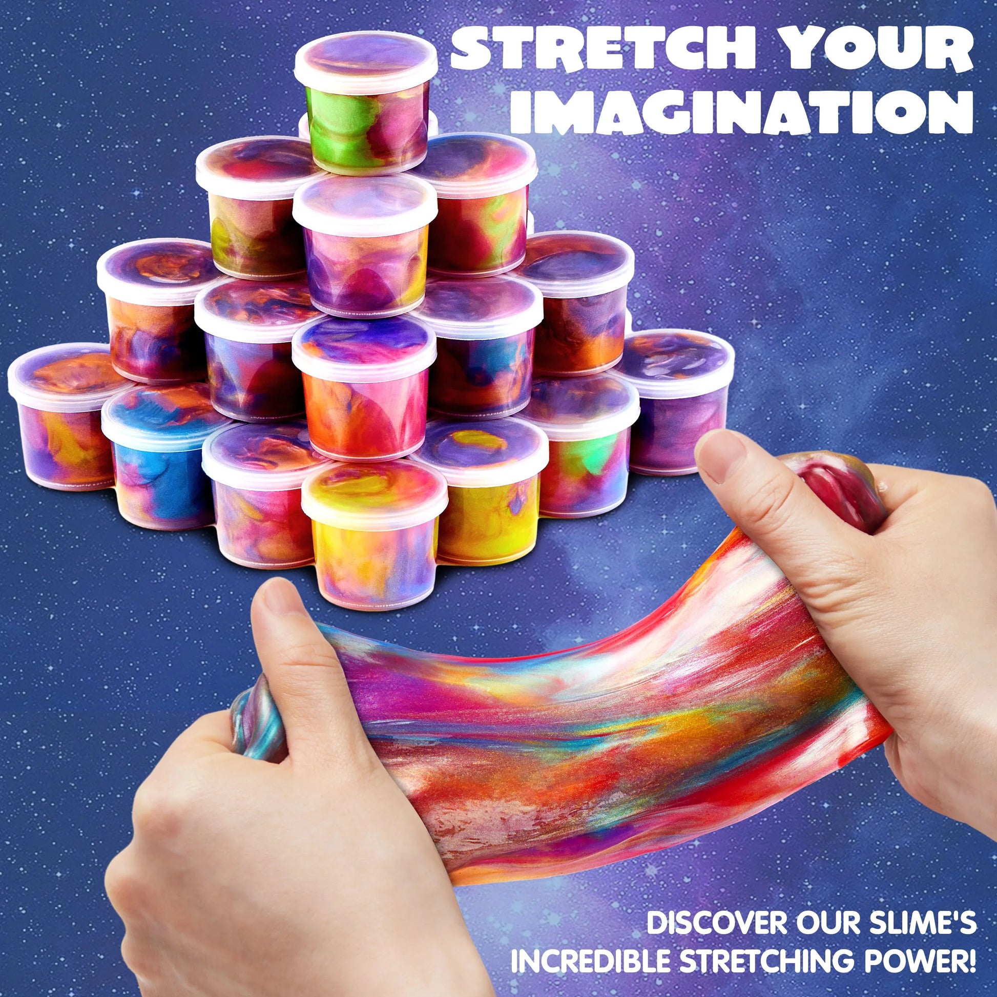 Syncfun 24 Pcs Galaxy Slime Cup Party Favors, Stretchy, Non-Sticky and Safe for Girls and Boys, Classroom Reward, Easter Basket Stuffers, Birthday Party Supplies