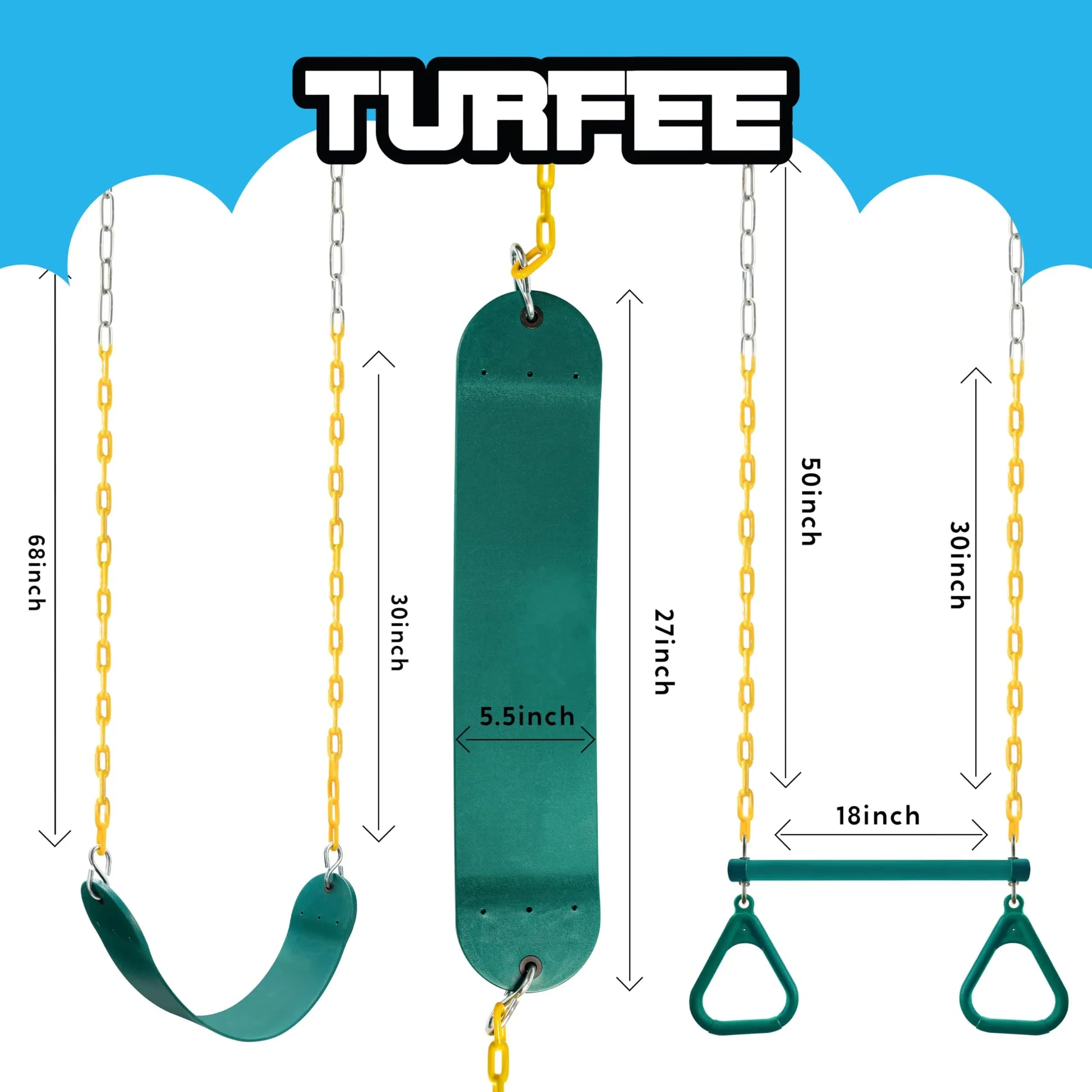- COMPREHENSIVE SET: Syncfun 3 Pack Assorted Kids Swing Set features two lush green extreme duty swing seats and a heavy-duty green ring/trapeze. Each swing set kit supports up to 250 pounds when attached to a heavy duty swing hanger, allowing parents to swing alongside their children.