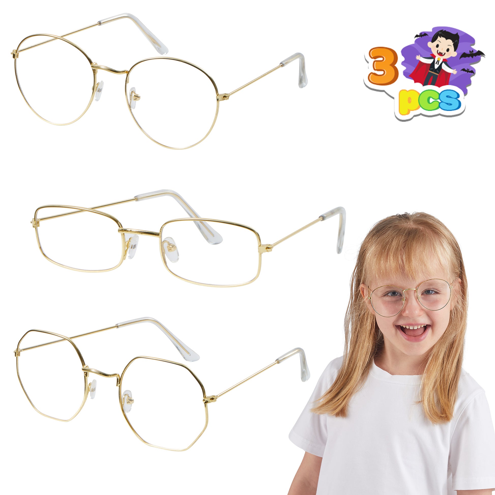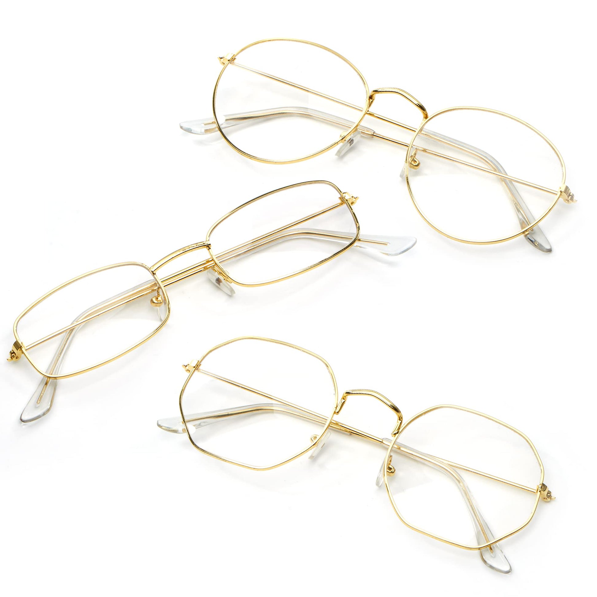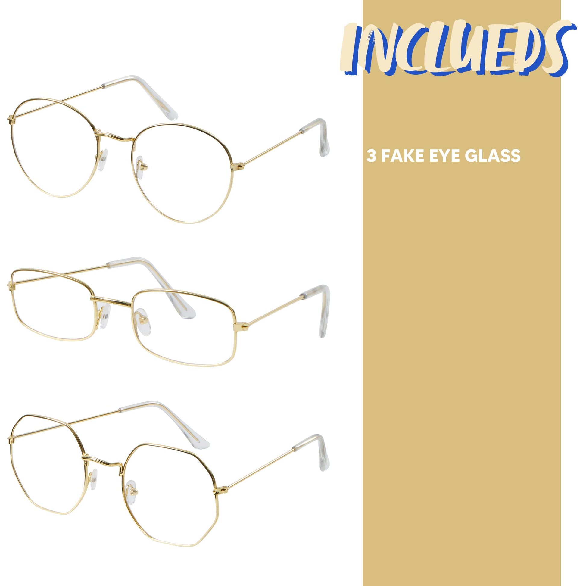 - Our old Man Costume Glasses Set included 3 pairs of gold eyeglasses in 3 different shapes, square, polygonal and round designs, sufficient styles can meet your needs of costumes very well.