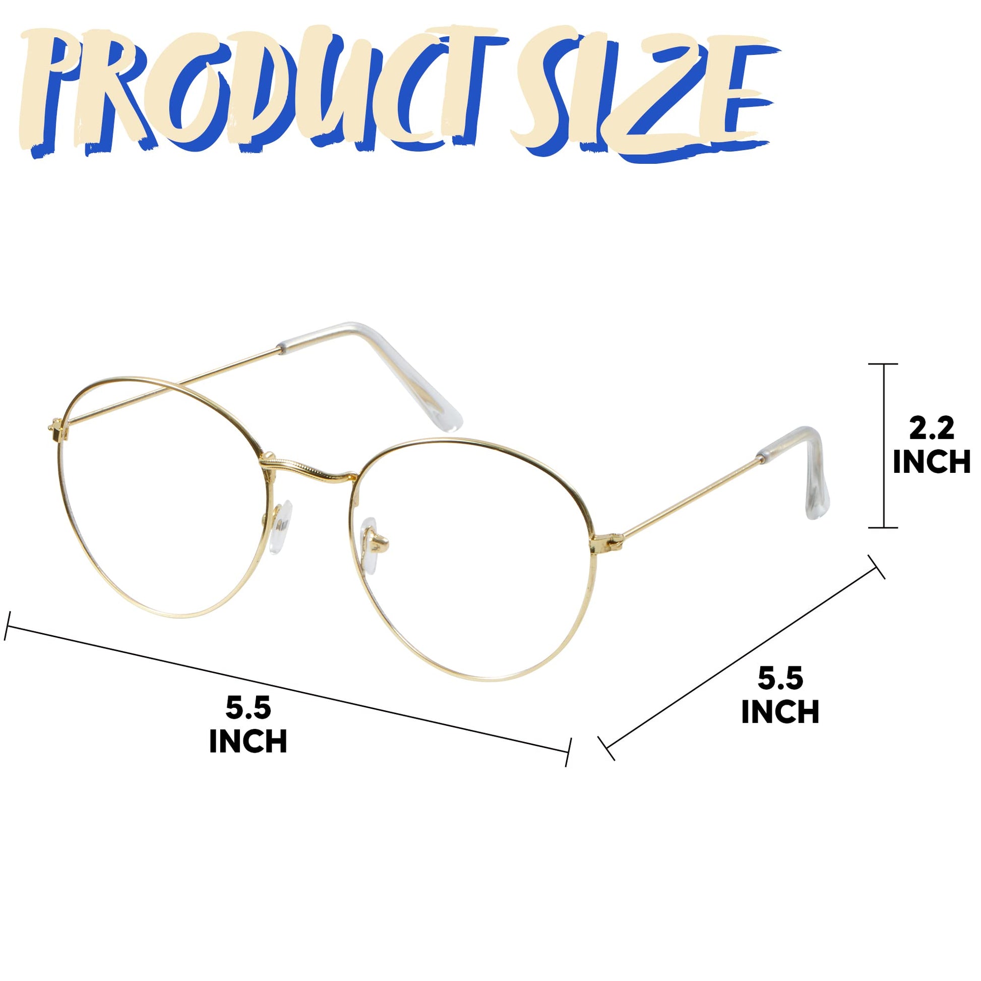 - The granny glasses nose pads are adjustable and can therefore fit all ages from children to adults. Frames have a clear non-prescription lens that will not harm your eyes.