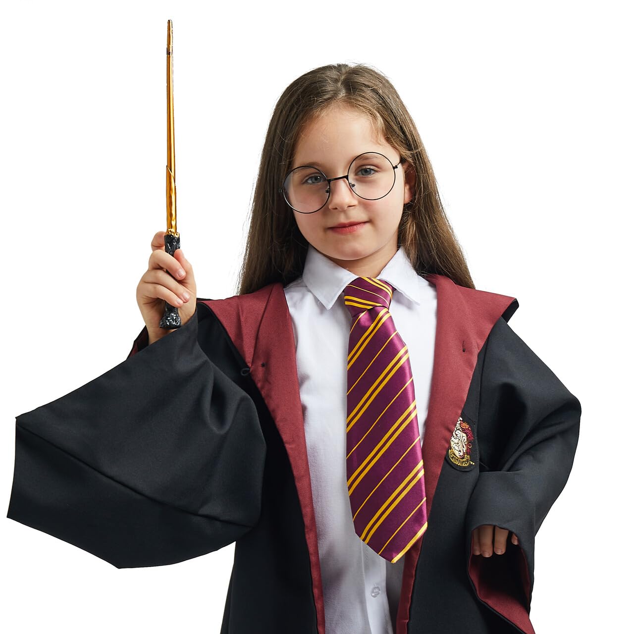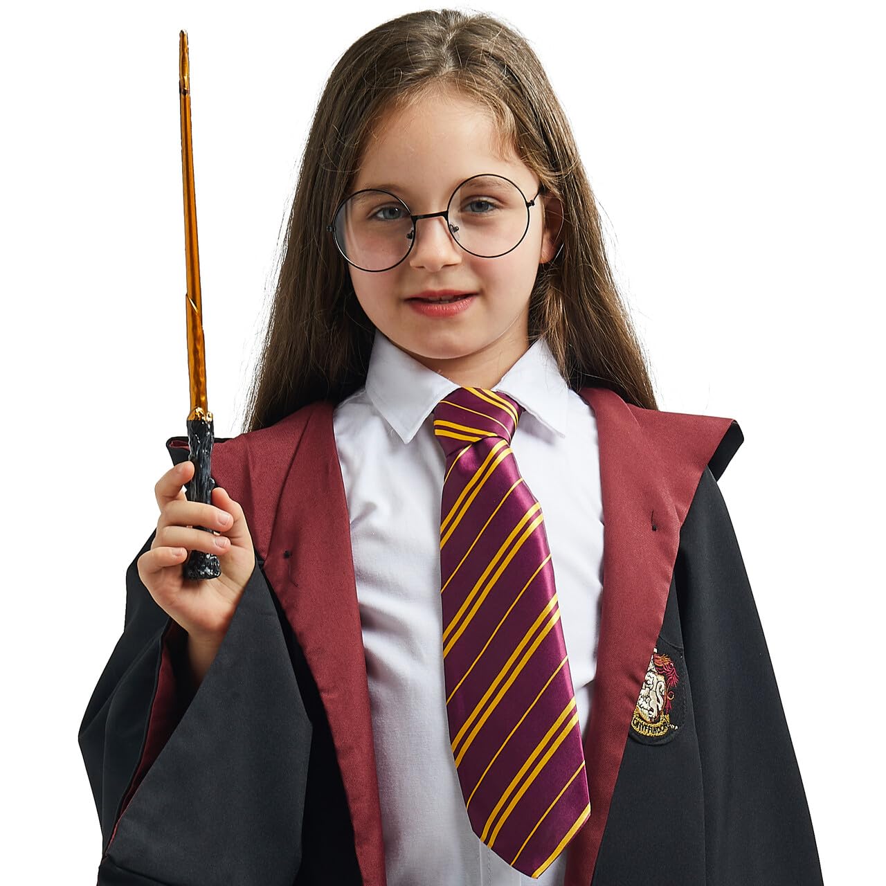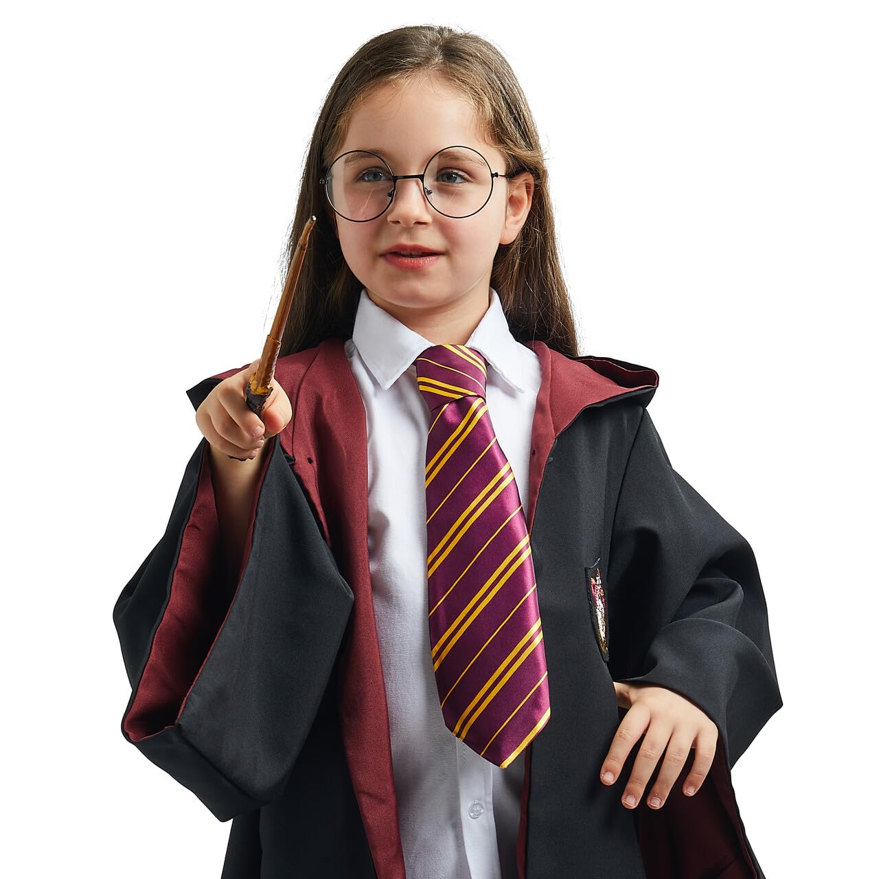 - WITCH AND WIZARD ACCESSORY SET: Complete your magical transformation with these essential accessories, including black wizard glasses, a stylish maroon and yellow tie, and a wand to cast your spells.