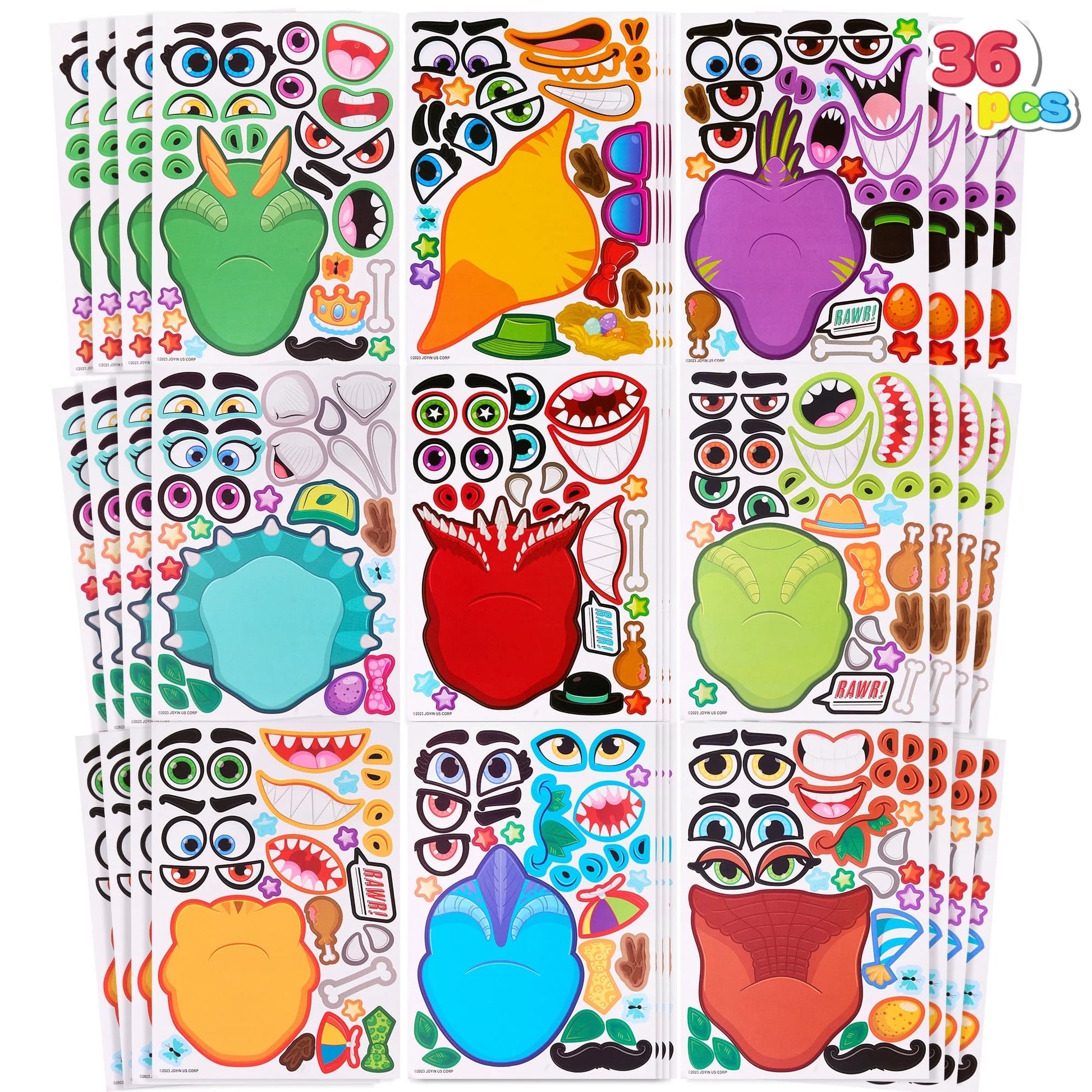 SYNCFUN 36 Pcs 9.8”x6.7" Make-a-Face Sticker Sheets for Kids Dinosaur Fantasy Animal Mix and Match Stickers, Dinosaur Birthday Holiday Party Favor Craft Gifts for Toddlers