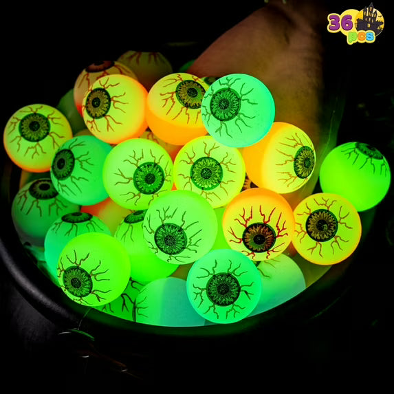 - The package includes 36 pcs of glow in the dark eyeball bounce balls,providing a plentiful supply for Halloween festivities and activities,Each measures 1.25 inches.