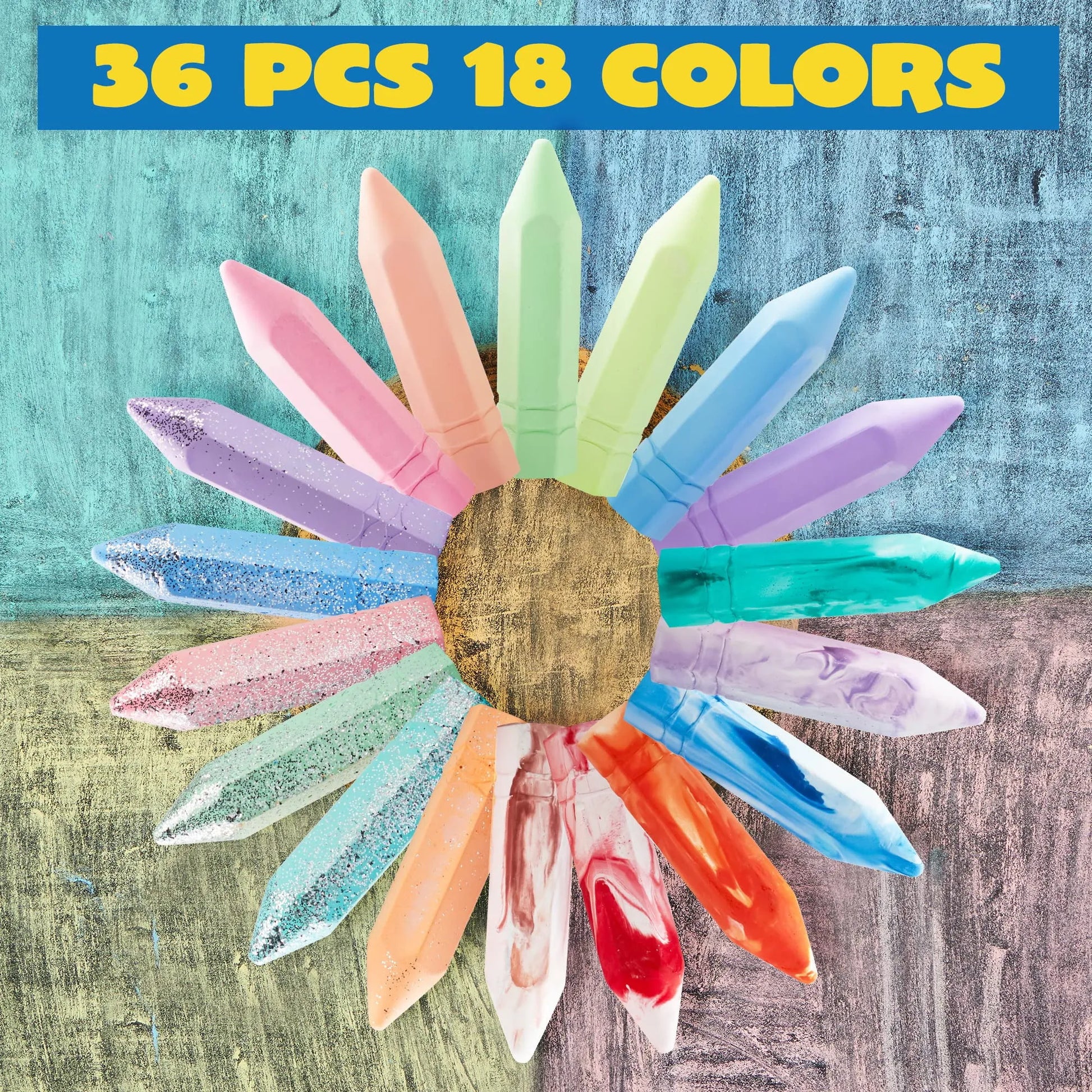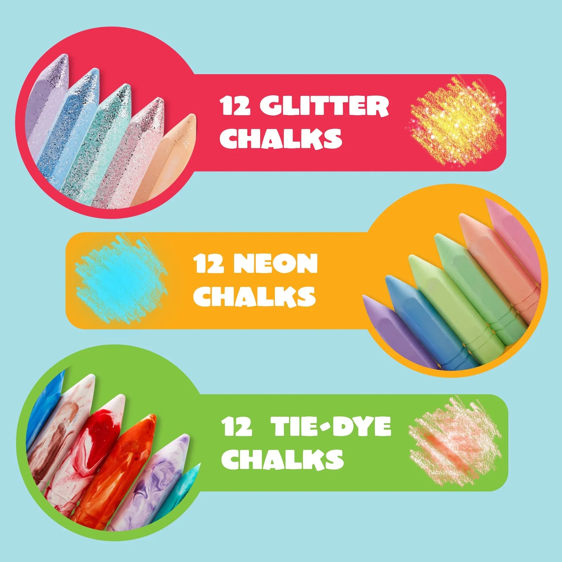 Syncfun 36 Pcs Sidewalk Chalk For Kids,12 Tie Dye Sidewalk Chalks, 12 Glitter Chalks And 12 Neon Color Chalks, Street Chalk Set For Painting, Drawing