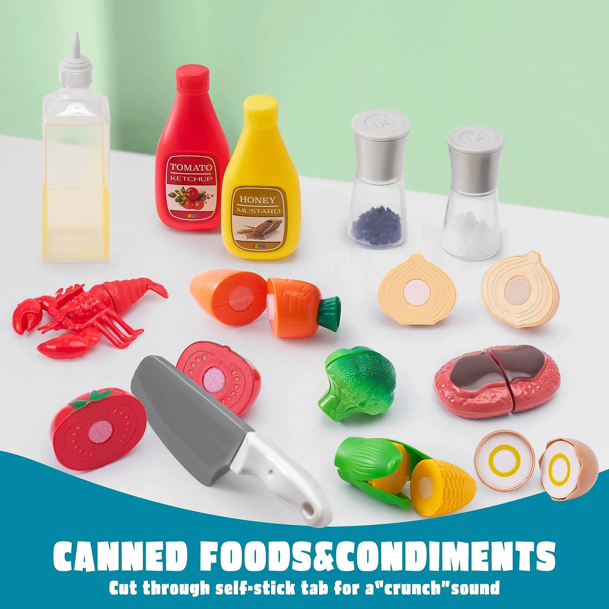 Watch your little chefs cook and serve their make-believe dishes! It's a complete cooking pretend play package, featuring Cuttable food items, Induction cooker,Drying Dish Rack,Magic Oil Bottle, Play pots, Pans and Kitchen utensils. With our Pretend Play Kitchen Toy Set, your little ones can cook with you, enhance fine motor skills, showcase their creativity and stimulate their imaginations!