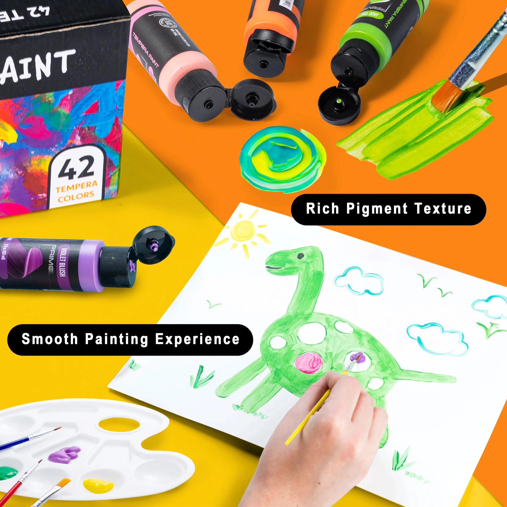- PREMIUM PIGMENT TEXTURE PAINT: Syncfun tempera paint set for kids includes 42 rich colored paints with 5 exciting textures of classic, neon, pastel, metallic and glitter color paints. This fantastic window paint has a crackless and flakeless texture after painting. Our hand craft paint is perfect for parent-child Play period and a great essential kit for any arts and crafts paint project.