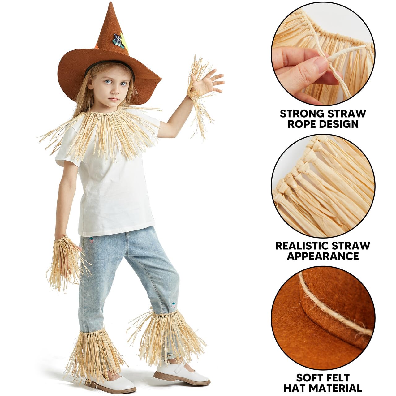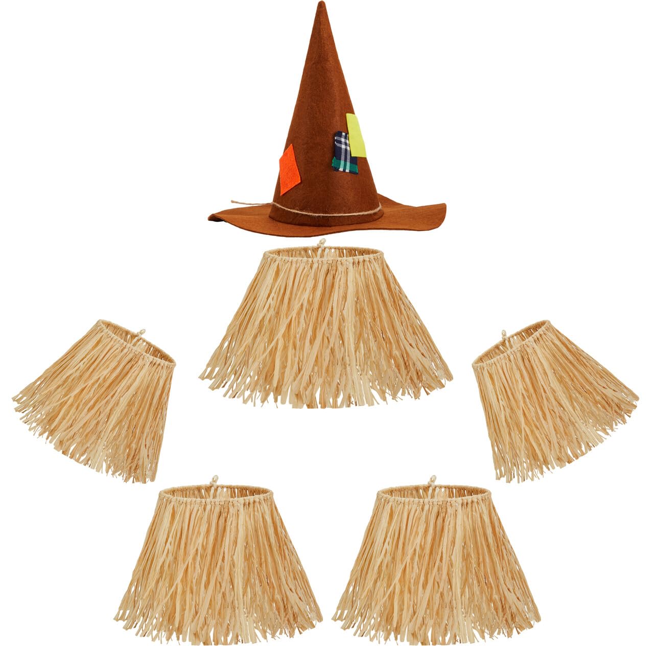 - Halloween Straw Scarecrow Costume Set containing 6 pcs.The Set features a Neck Straw,2 Foot Straws,2 Hand Straws, and a Hat. You'll have everything you need to complete your scarecrow ensemble.