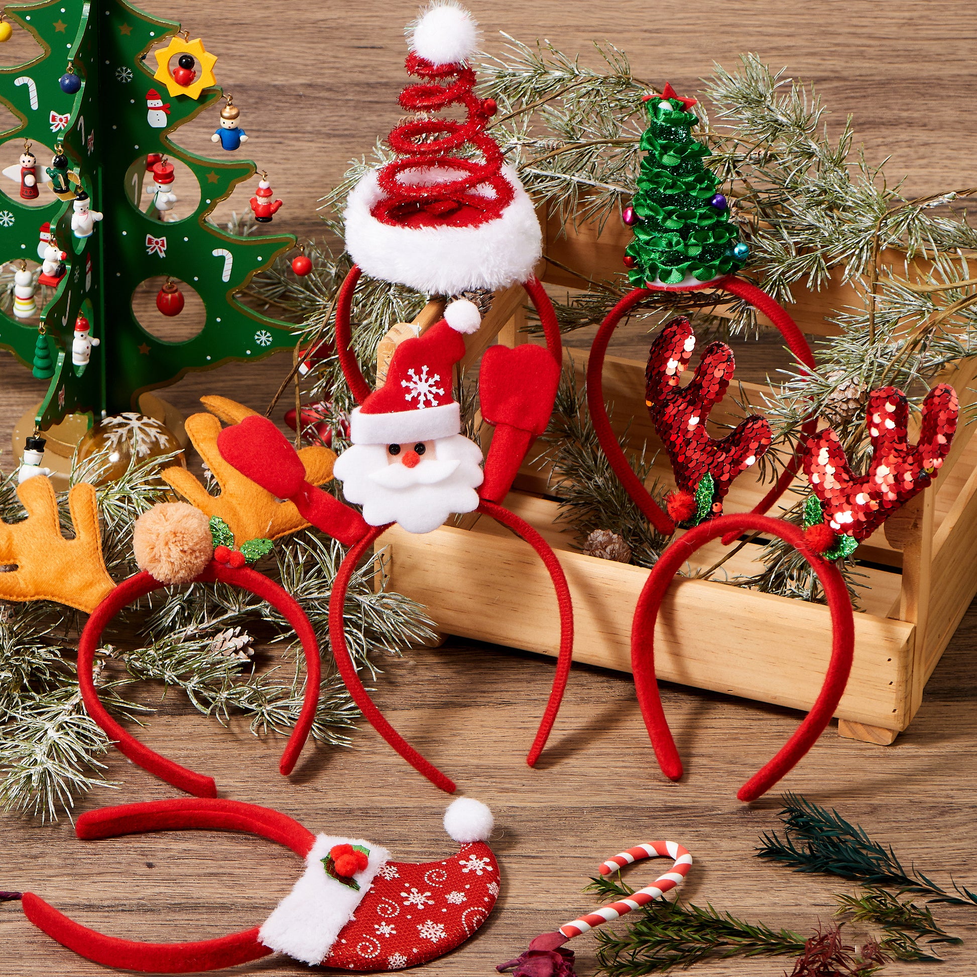 - SUPER VALUE PACK. Our Christmas Headbands Party Set includes 8 different Christmas decorative Headbands. These reindeer, Santa santa, Santa hat, snowmen, and Christmas tree headbands are pretty and lovely. Perfect for Christmas Parties and Holiday Party favors!