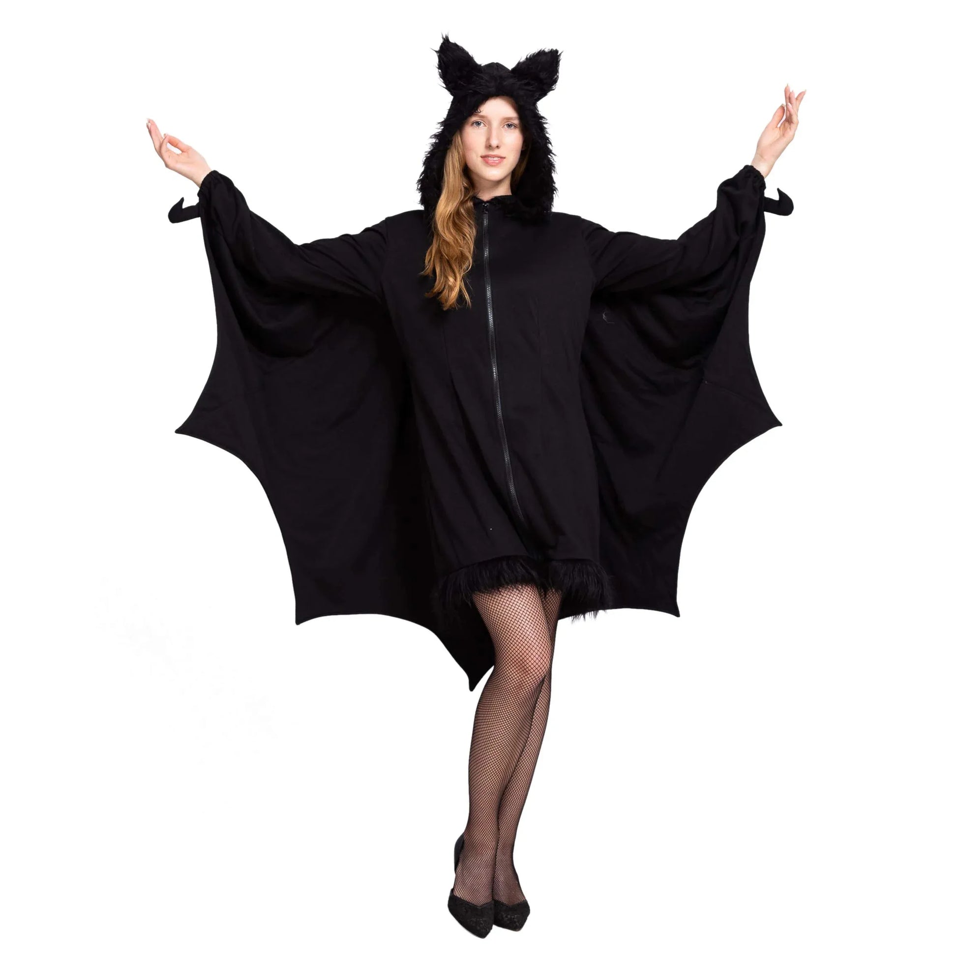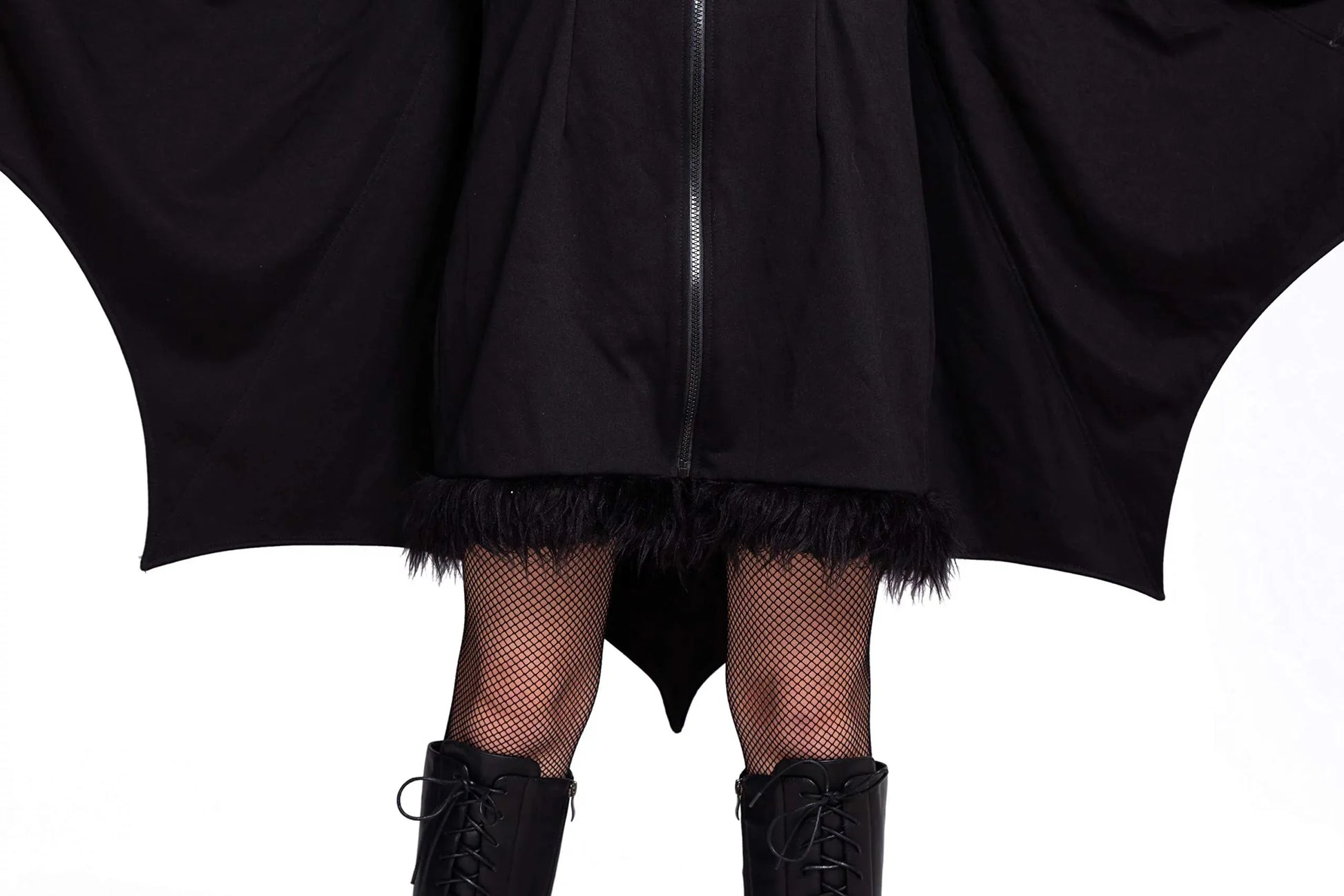 Woman’s Black Bat Zip Hoodie Halloween Costumes for Adults. Perfect for Halloween Dress Up Parties, Festivals, Spooky and Scary Halloween, Rave Outfit, Black and White Party, Cosplay Event, Theater Play, Magician Costumes, Vampire Cloak Costume, How to Train a Dragon Theme Party, Witch Cape Costume, Batman Theme Party, Mages Costume, Gothic Costume, Masquerade, Movie Props, Pretend Play and more!