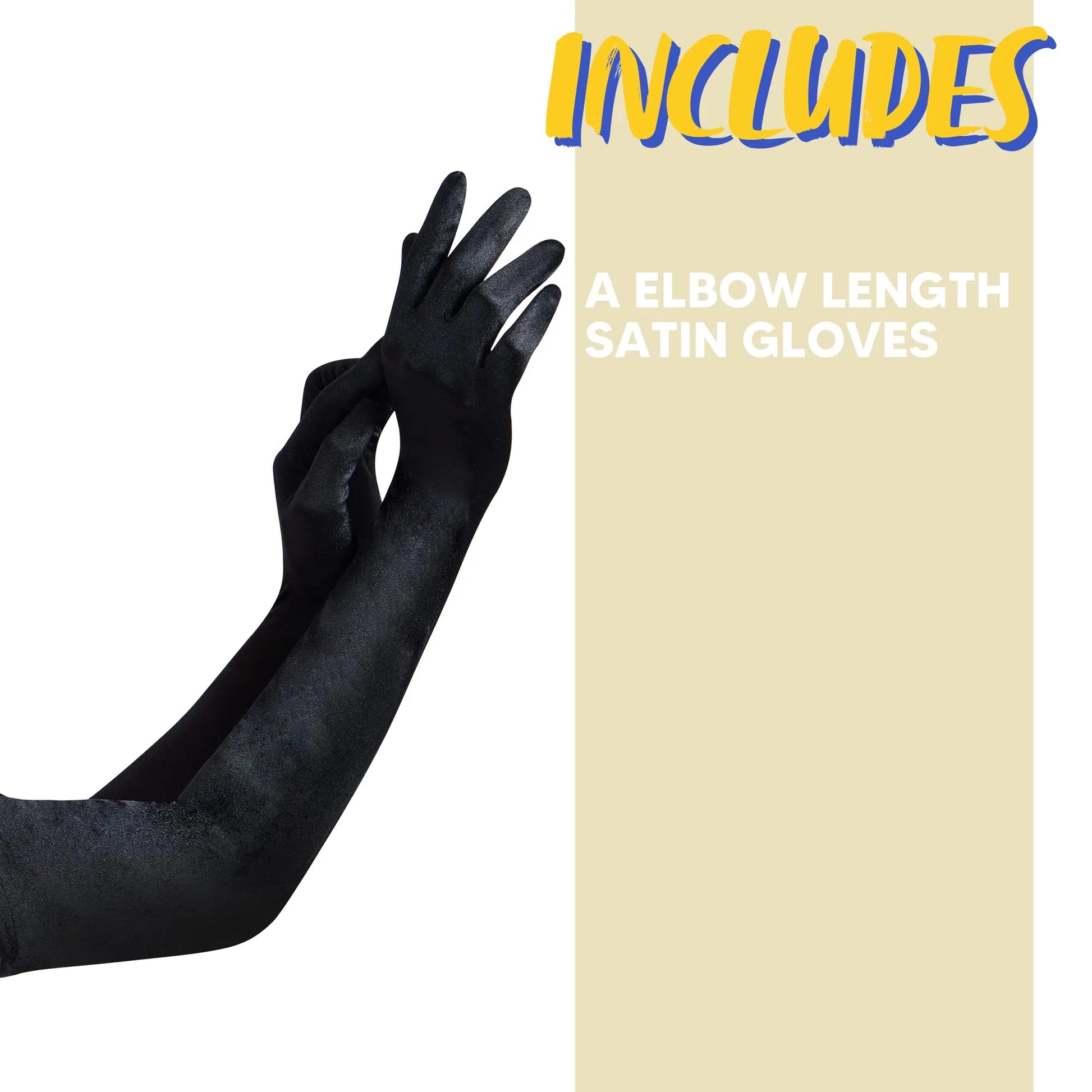 Long Opera Party Gloves 1920s Women's Satin Dress Gloves, black silk fabric, elbow length gloves, perfect decoration for fashionable dresses, suitable for Halloween costumes, weddings, receptions, dinner parties and many more occasions