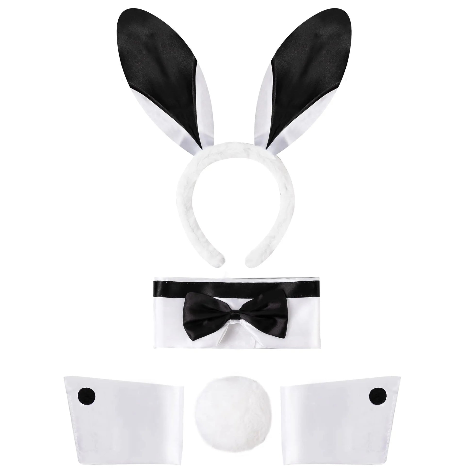 - Value Package: Bunny Costume Set includes bunny ears headband, bow tie, bunny tail, and arm cuffs with unique designs.