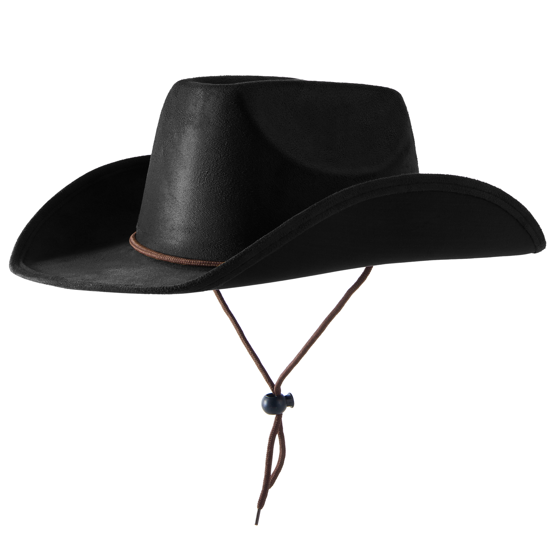 - MATERIAL: Made of 100% polyester, our Black cowboy hat is crafted for durability and comfort. The classic Black color and timeless design will transport you to the Wild West.