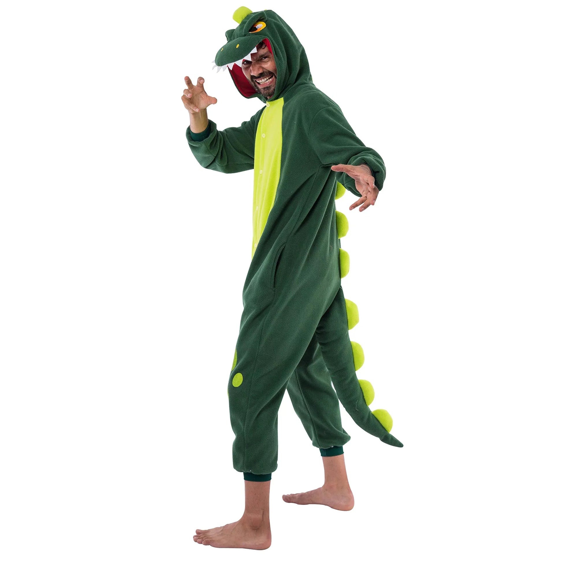 Syncfun Dinosaur Pajamas Plush for Adult, Halloween Costume for Dress Up Cosplay, Unisex Dinosaur Suit Cute Green-XL