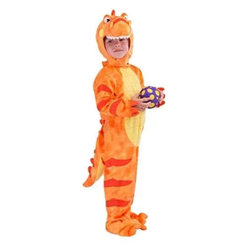 Syncfun Dinosaur T-Rex Realistic Orange Costume for Kids, with Toy Egg Halloween Dress Up-S