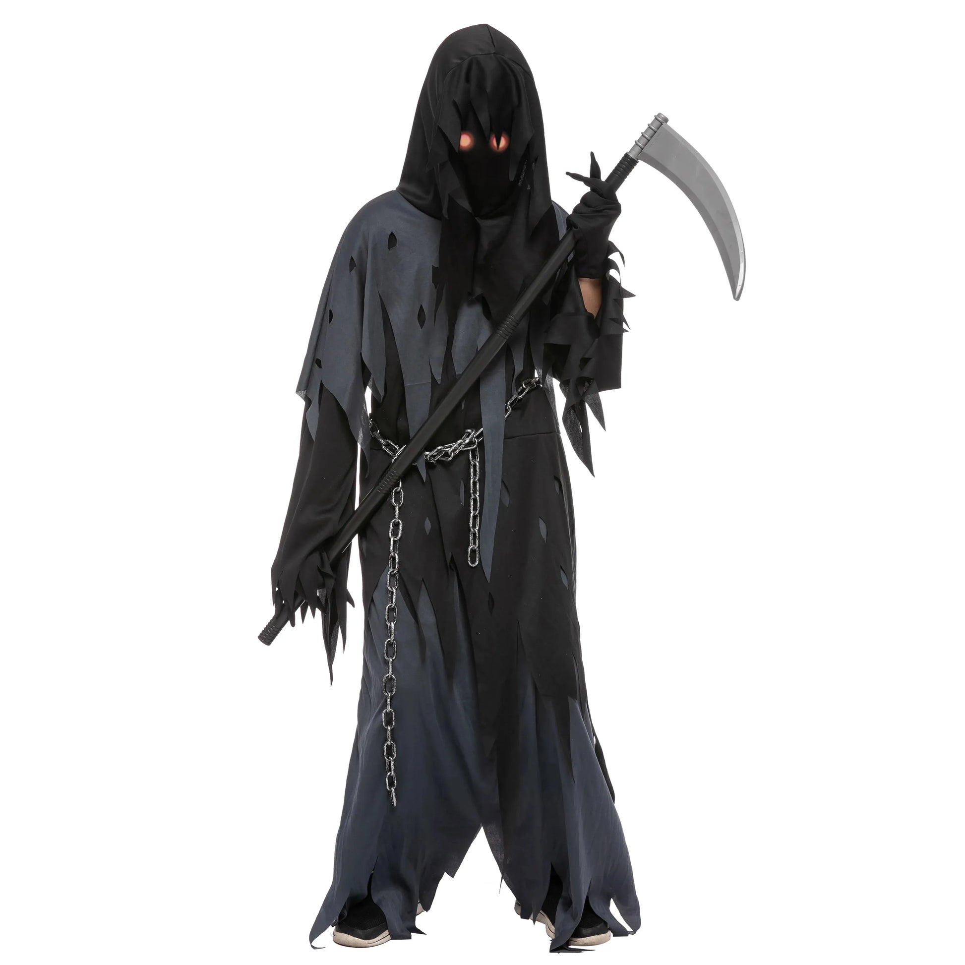- GRIM REAPER COSTUME KIDS. This Reaper Costume for Boys features a Scary grim reaper costume, spooky sleeves. Super Durable Higher Quality that is made of 100% Polyester