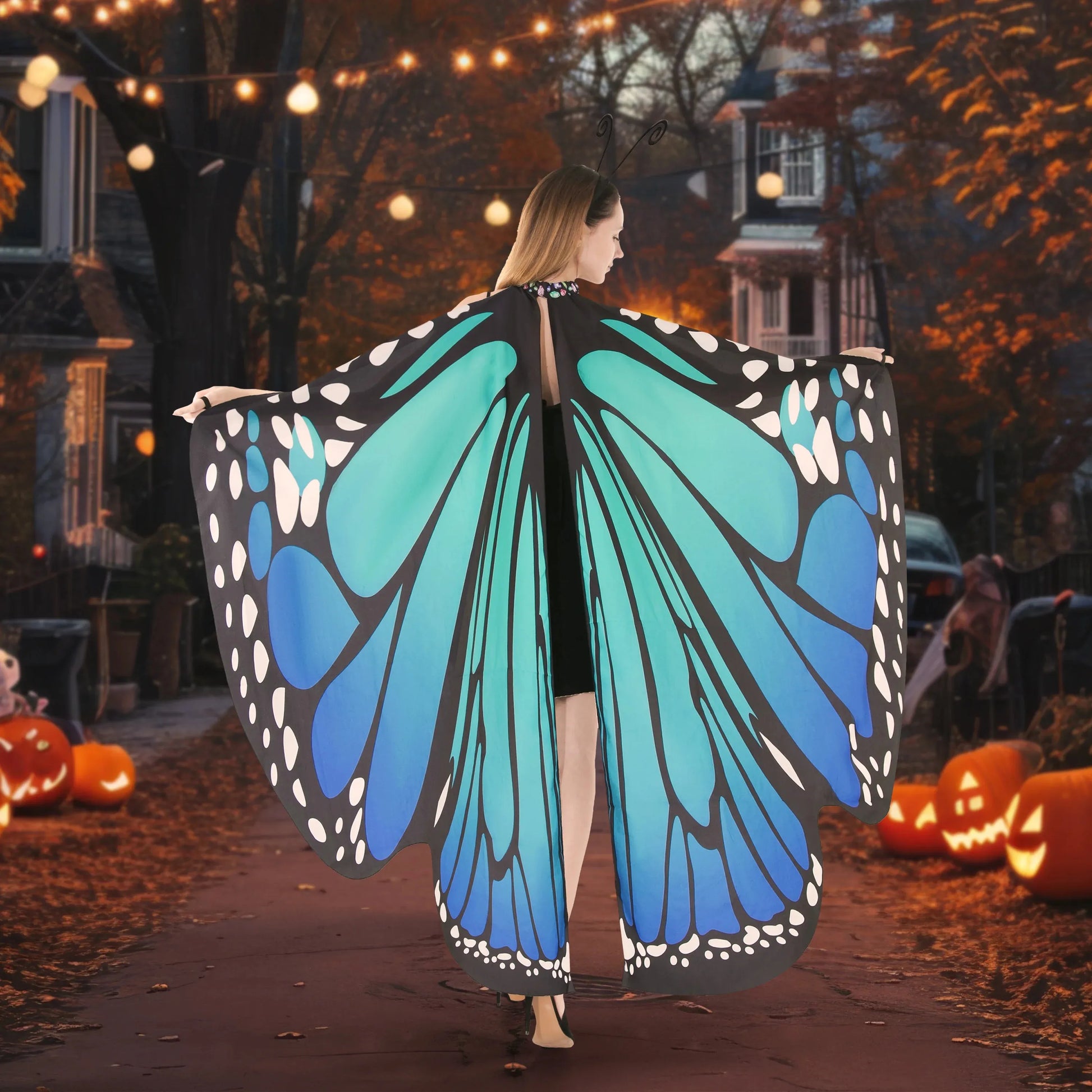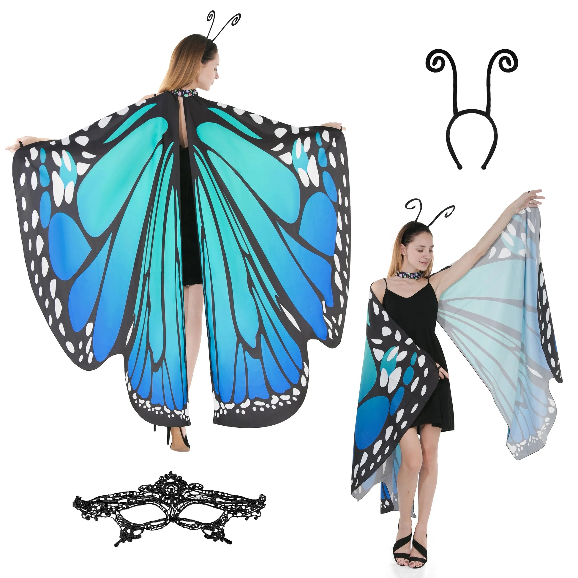 Butterfly Wing Cape Shawl with Lace Mask and Black Velvet Antenna Headband, butterfly costume for girls,Perfect for Cosplay Party, butterfly wings for women, costumes for women, adult halloween costume women, halloween costume masks, adult fairy costume, fairy wings for adults, butterfly costume, fairy costume for women, Butterfly Wing Cape