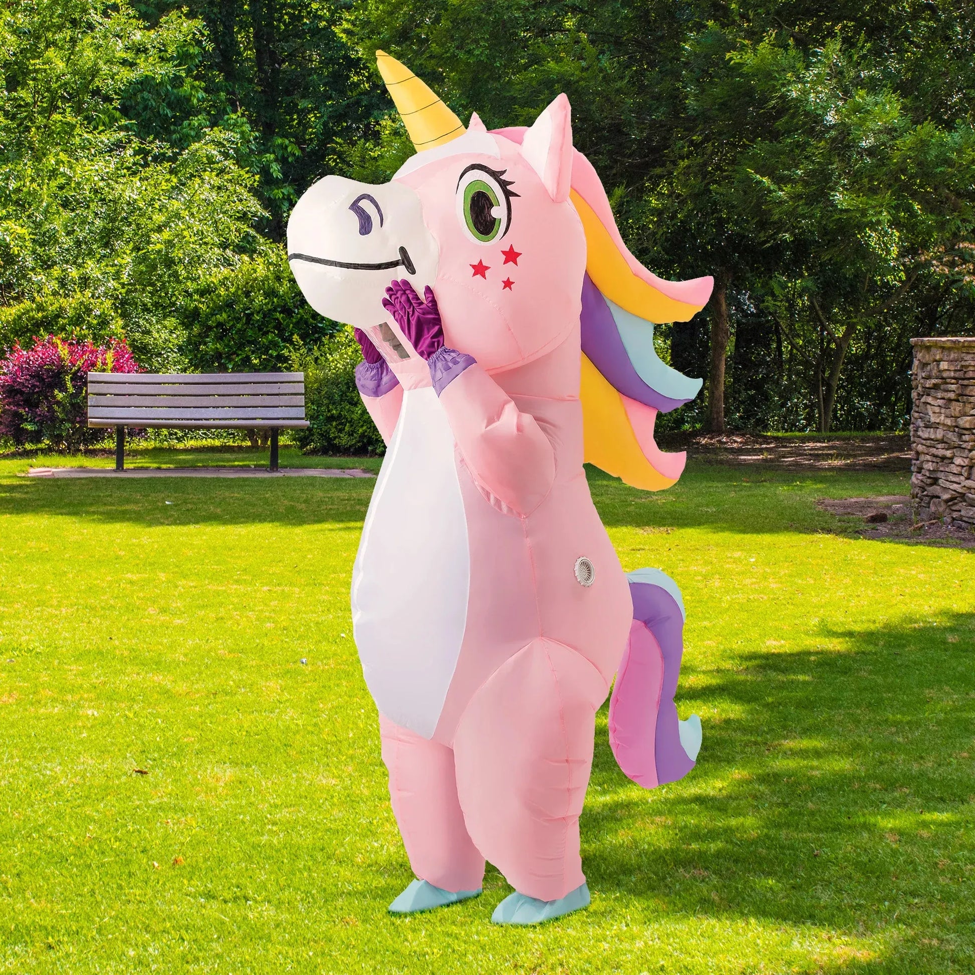 - Unique Design: Inflatable full body unicorn costume. Adult size, unisex. One size fits all.