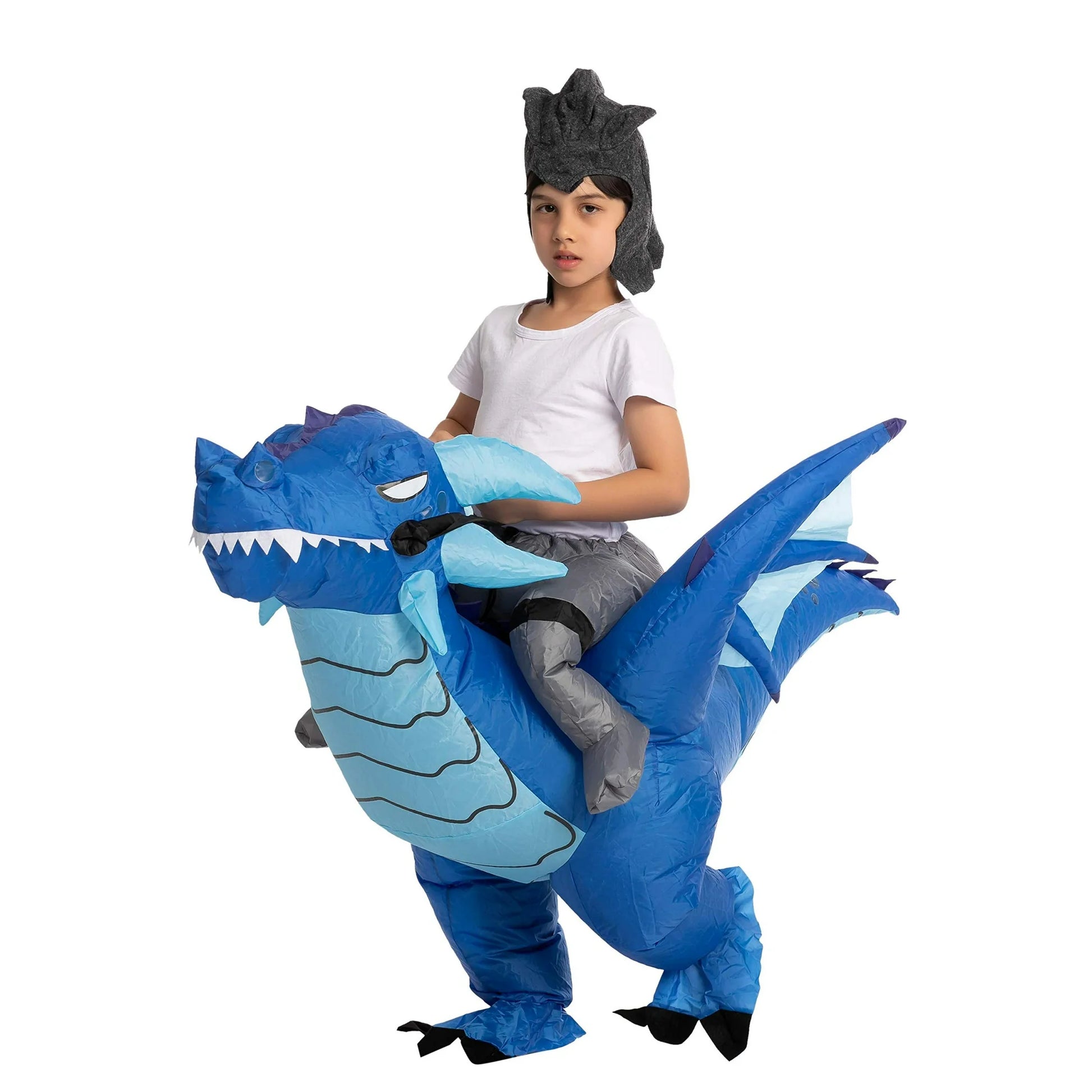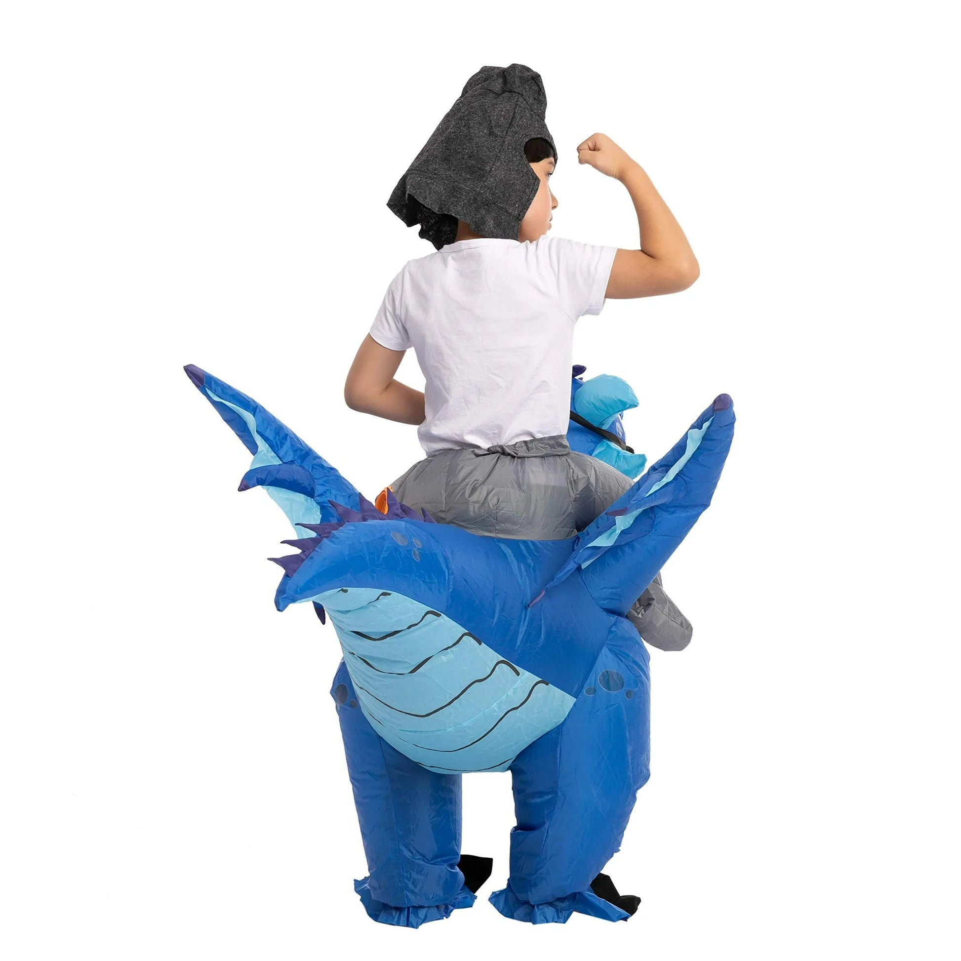 Inflatable Costume for Kids, Ride An Ice Dragon Inflatable Costume with Hat, Cool Ride On BlowUp Dragon Costume