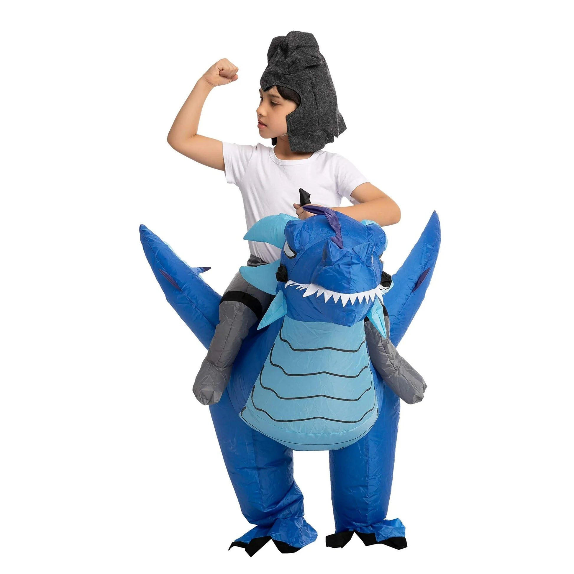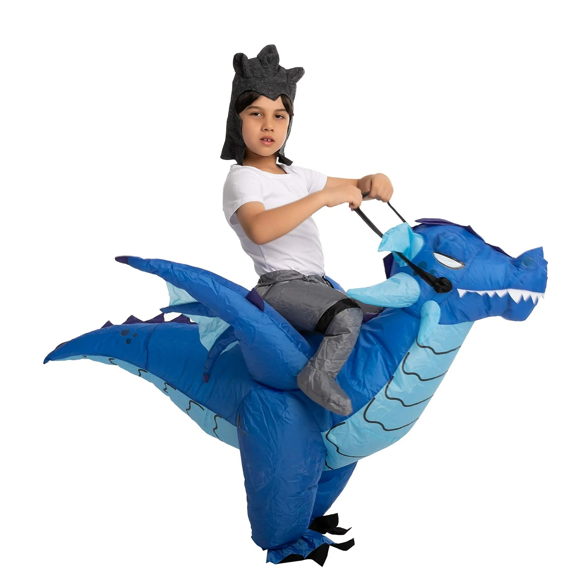 Syncfun Inflatable Costume for Kids, Ride An Ice Dragon Halloween Costume with Hat, Cool Ride On Blow Up Dragon Costume for Party Dress Up