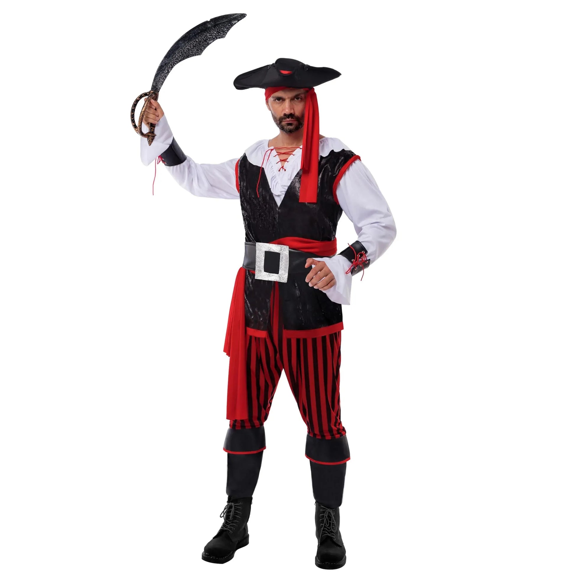 - Super Value Pack for Mens 7 Seas Captain Cutthroat Pirate Role Play and Party Supplies. perfect for Halloween Costumes Dress Up Parties, Medieval Captain Skullduggery, Costume Adult, Red and Black Pirate Accessories, Rum Pirate Costume, Ahoy Matey Pirate costume, Theme Party, Pillaging Ghost Pirate costume, Ubest Carribbean Pirate Costume