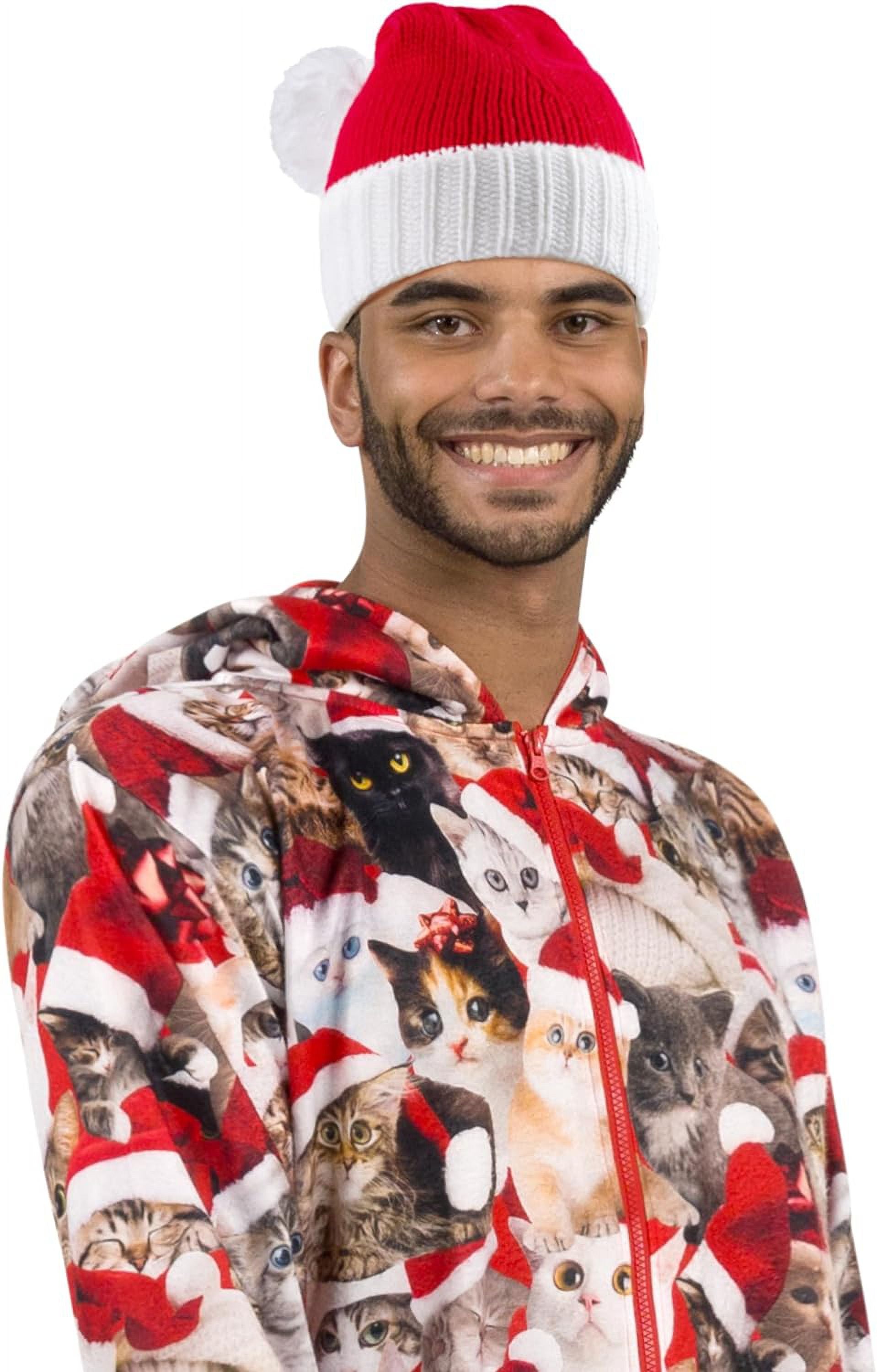 Joyfy Santa Hats Adult Christmas Hat Elf Xmas Party Hat Red Knitted Beanie Hat for Adult Women Men