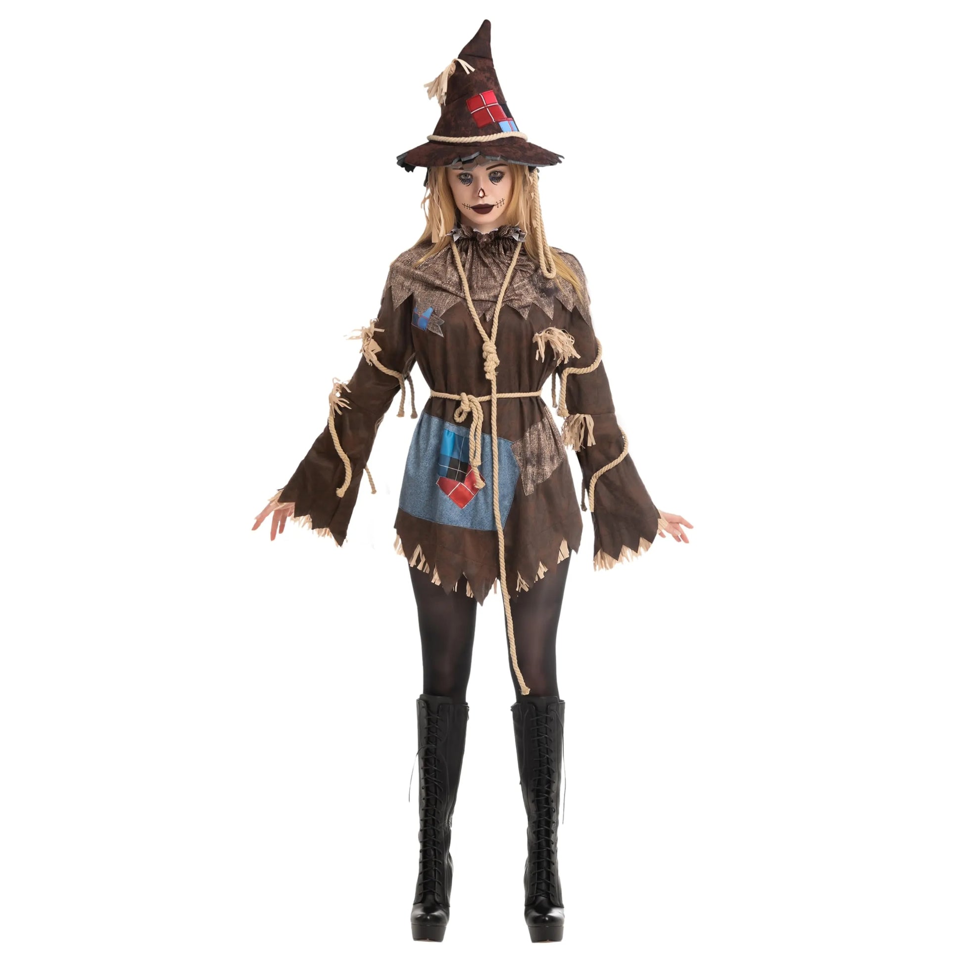 - The Women's Scarecrow Costume comes with a Hat, Dress, Collar with rope, and Waist rope.