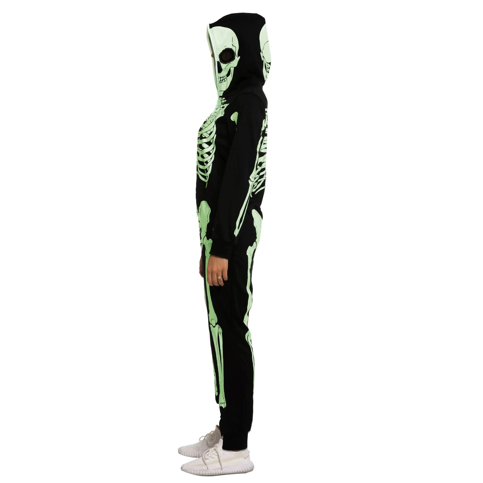 Syncfun Skeleton Glow Hoodie for Adult, Jumpsuit Pajama Jumpsuit for Halloween Costume for Women, Themed Party Dress UP