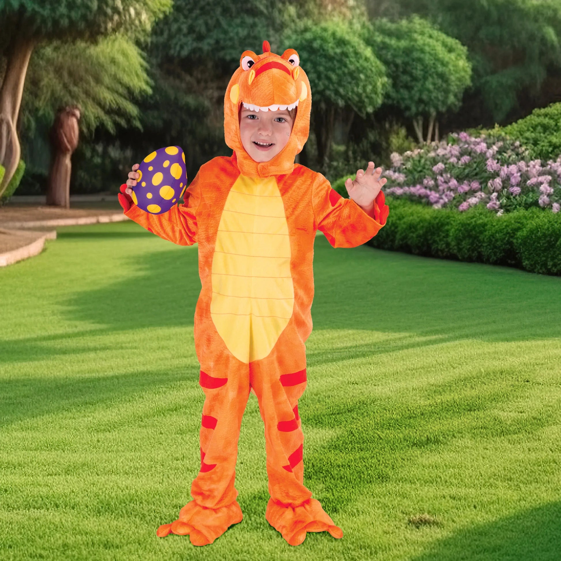 - Product Packag including: Kids T-Rex Dinosaur Pack, includes dinosaur hood, T-Rex jumpsuit with tail and plush egg.