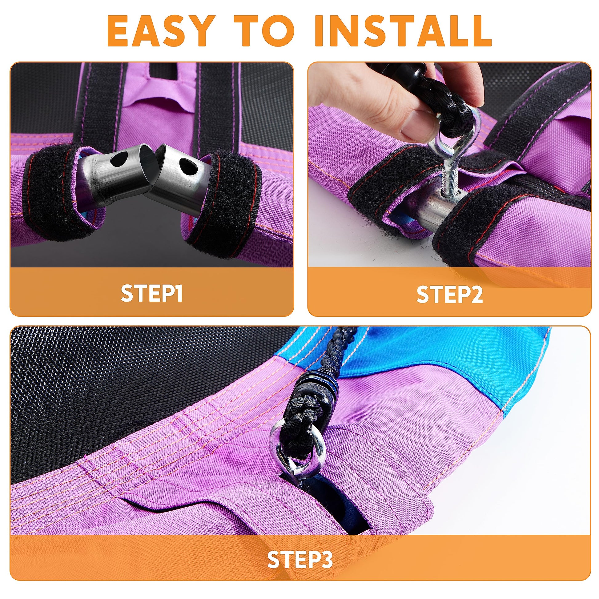 - UNIQUE DESIGN AND EASY TO USE. Our outdoor tree swings for kids have four side handles for extra stability. These kids’ saucer swings are easy to attach to any swing set, tree or other playground equipment due to the tree swing straps included in the package. It is the perfect addition to any backyard!
